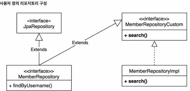 }- Querydsl 전용 기능인 회원 search를 작성할 수 없음 ⇒ 사용자 정의 리포지토리 필요함